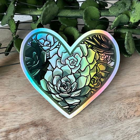 Succy Heart Holo Succulent Sticker