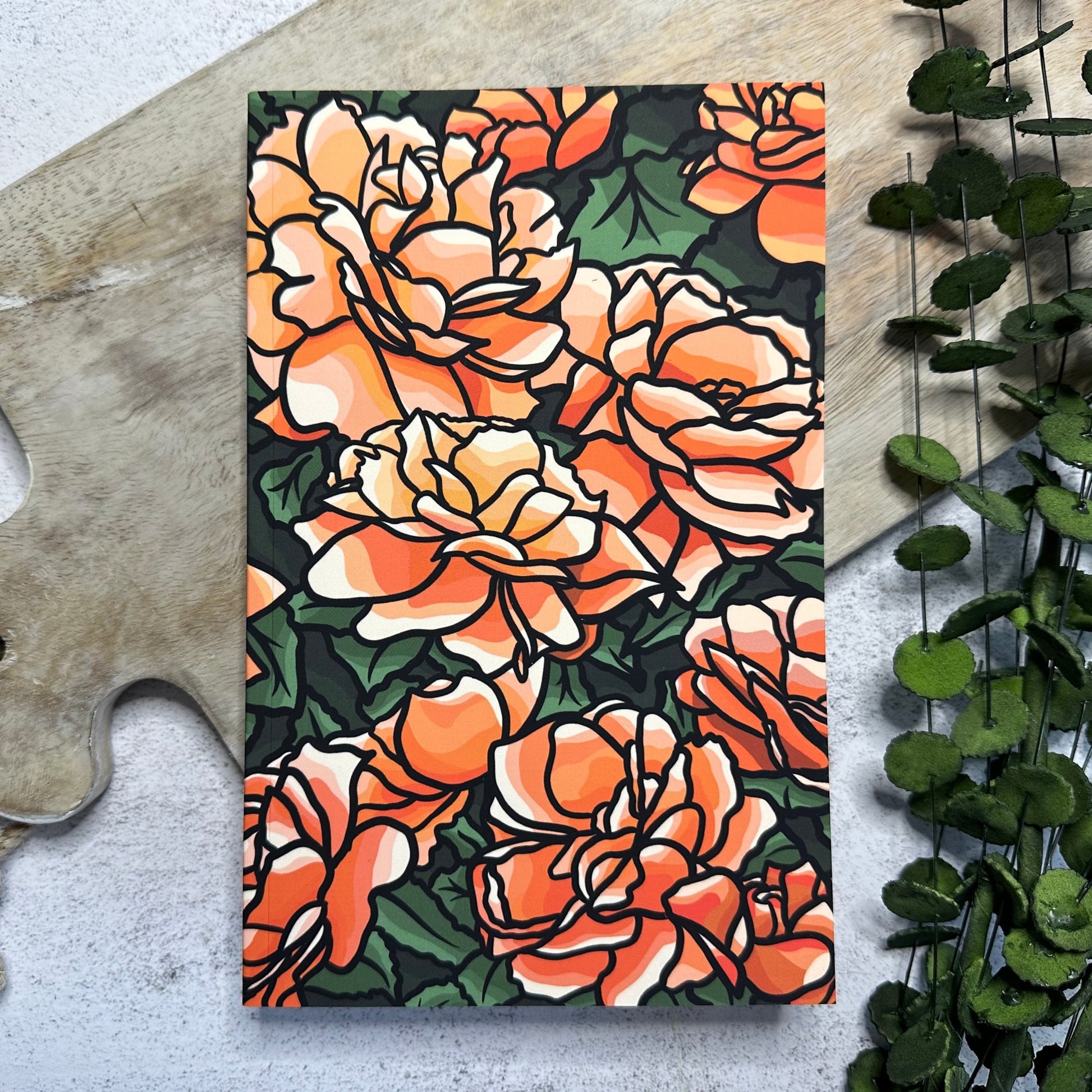 This is a layflat notebook of my vibrant peach colored drift roses! Perfect for any gardener, flower enthusiast, or lover of house plants and succulents!