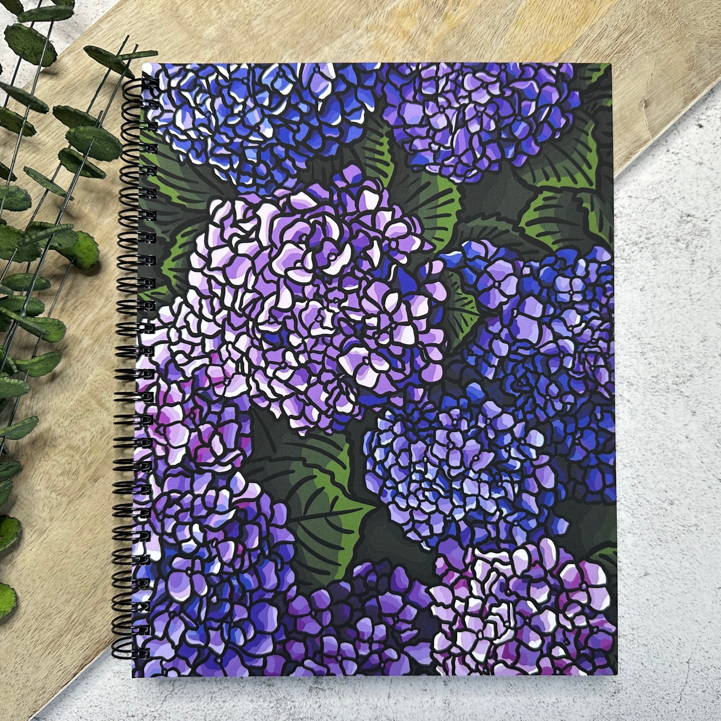 This is a spiral notebook of my vibrant purple and blue hydrangeas! Perfect for any gardener, flower enthusiast, or lover of house plants and succulents!