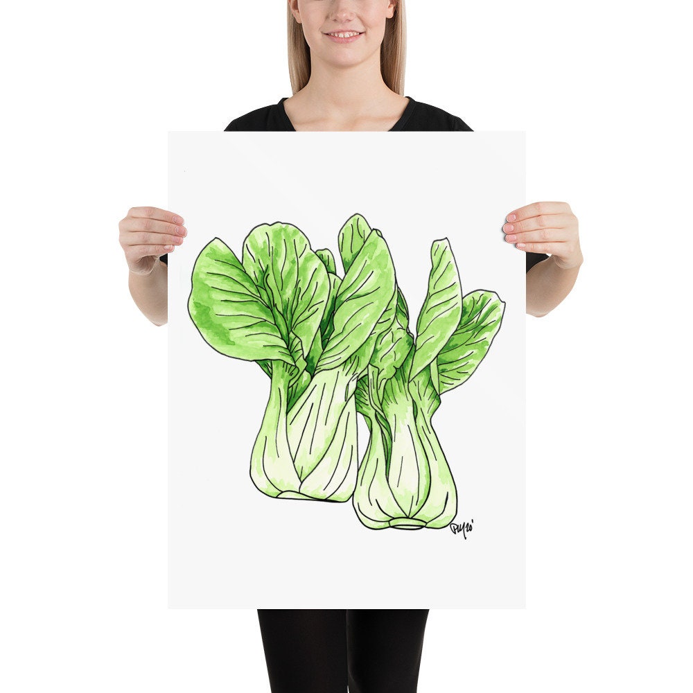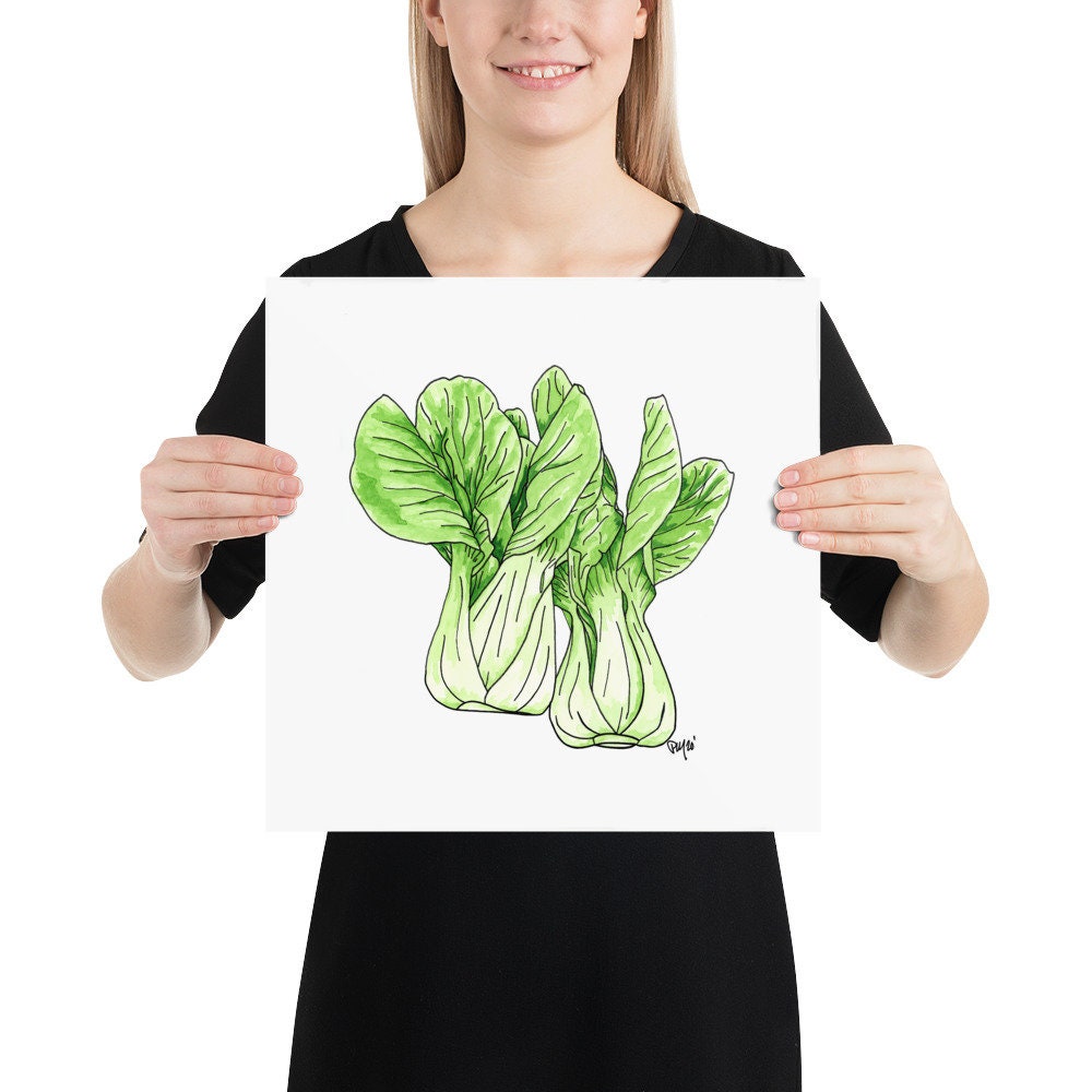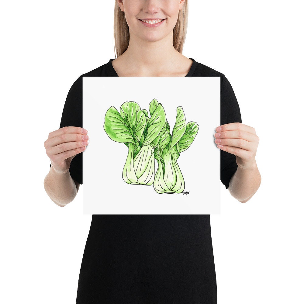 This is a physical print of a my hand painted Bok Choy watercolor and ink painting!
