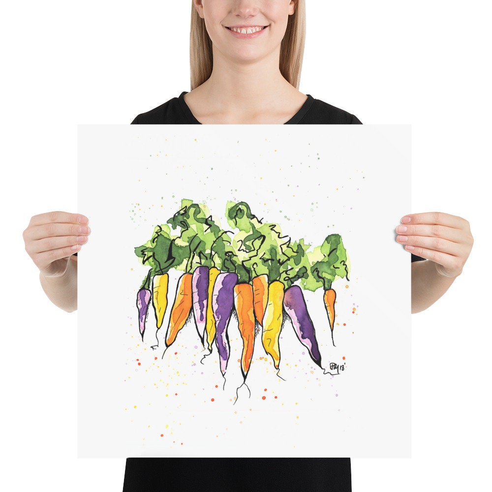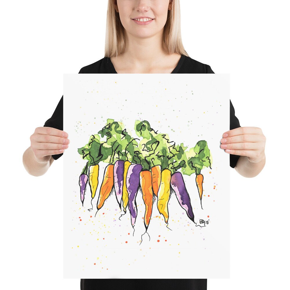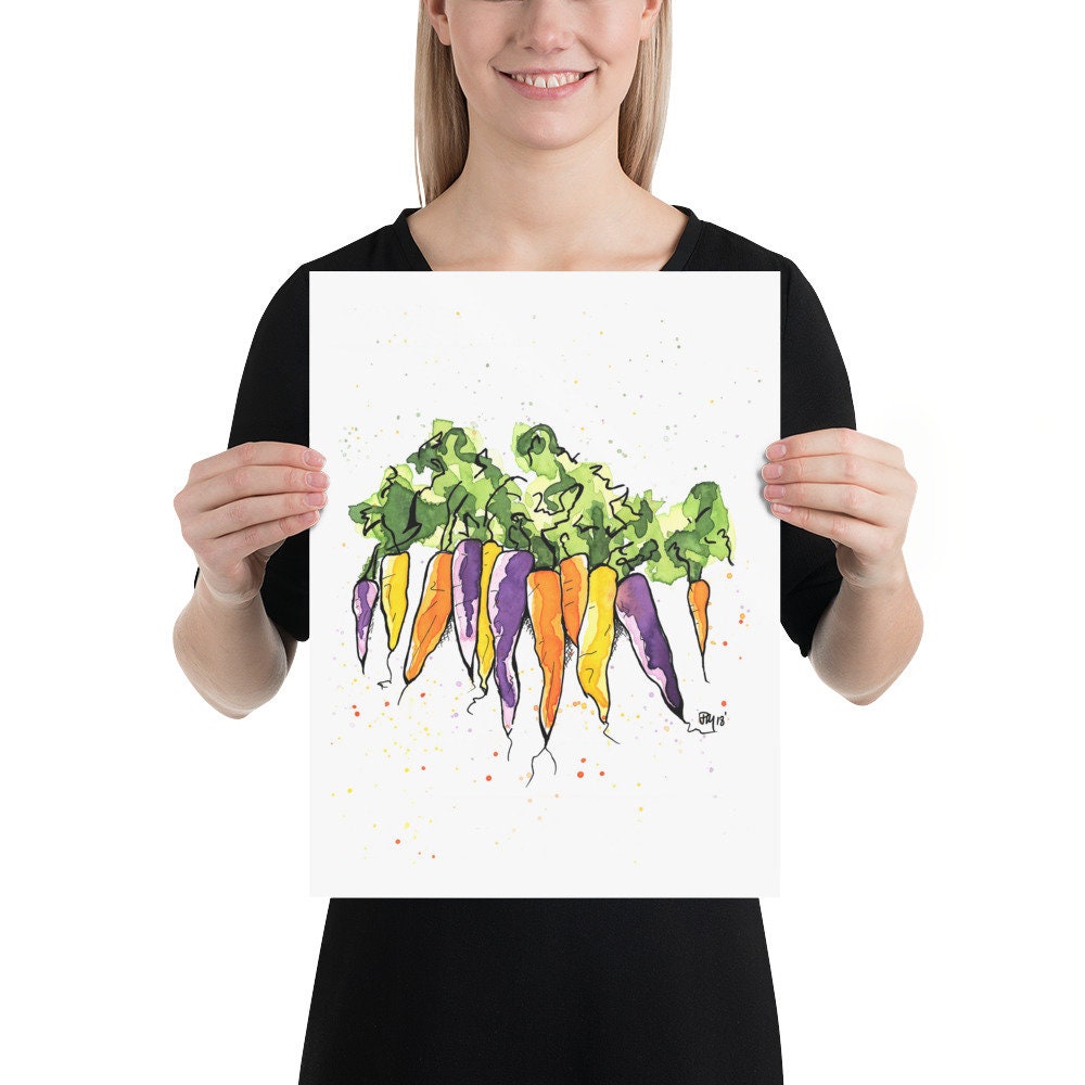 This is a physical print of a my hand painted Colorful Carrot Vegetable watercolor and ink painting!