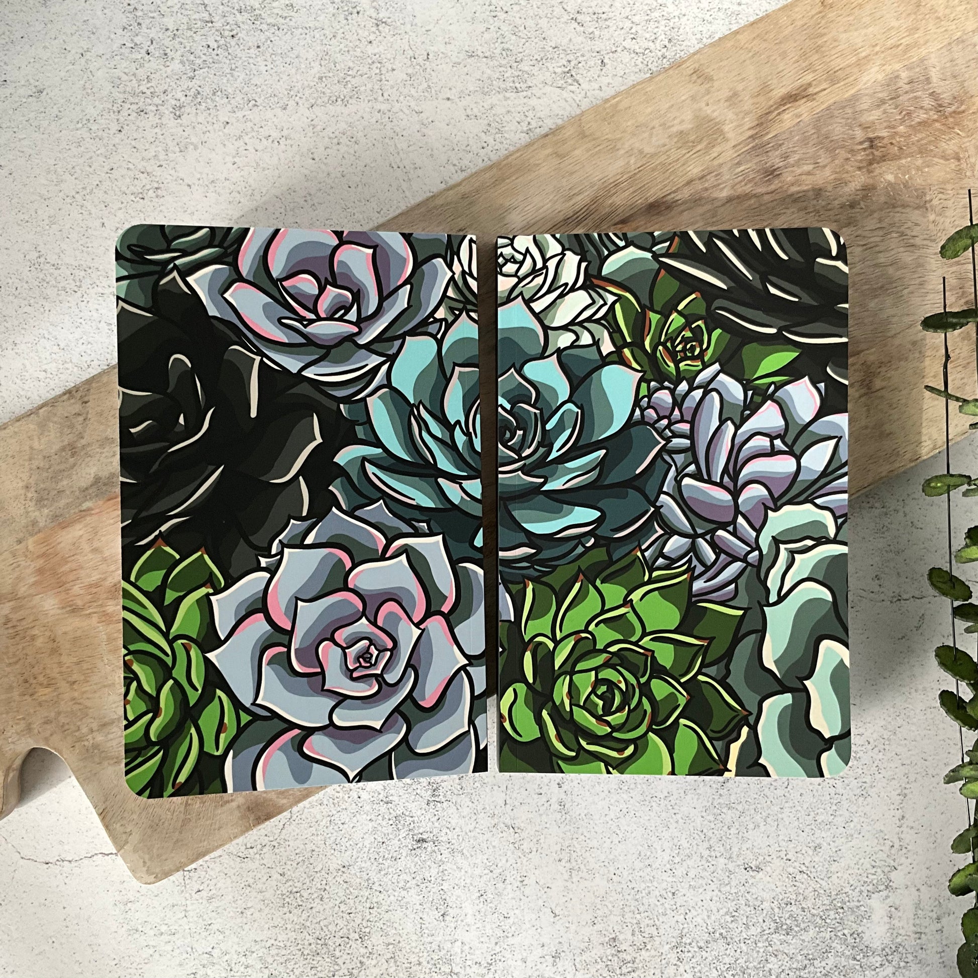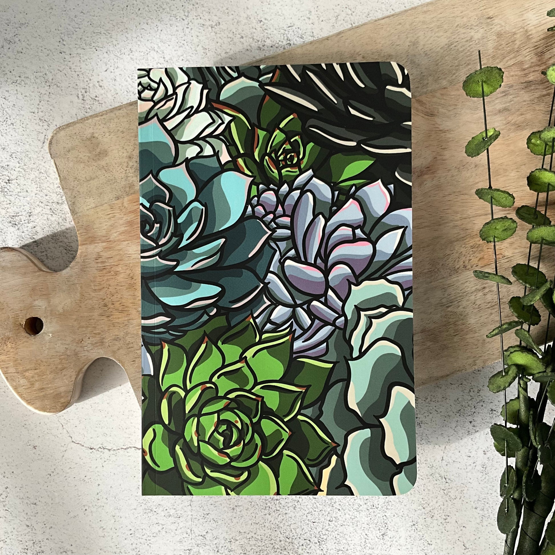 This is a layflat notebook of my vibrant multi-colored succulents! Perfect for any gardener, flower enthusiast, or lover of house plants and succulents!