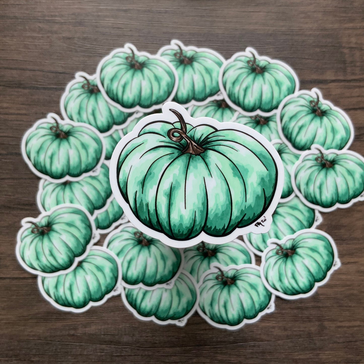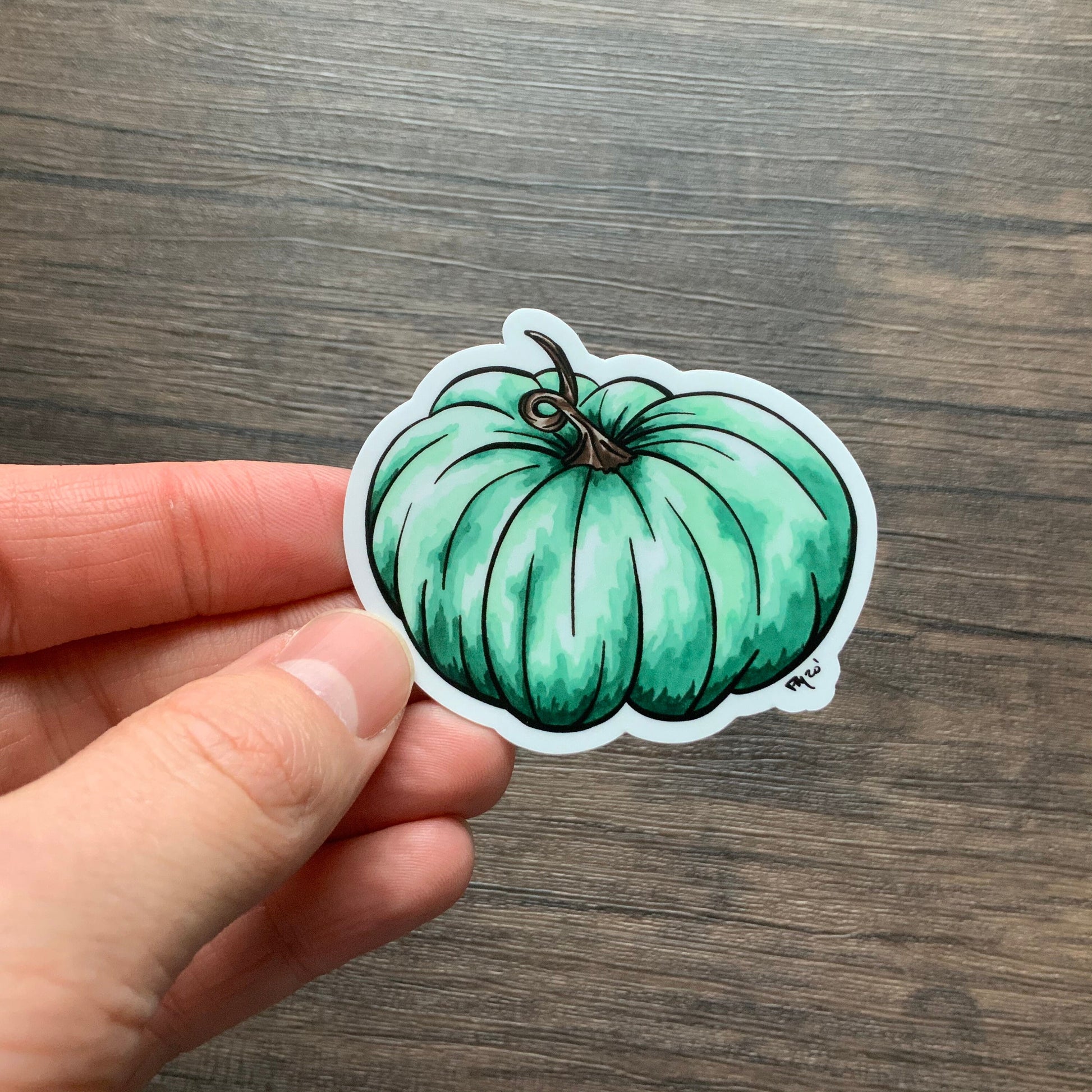 This is a sticker of my hand painted watercolor Green Pumpkin! If you`ve got someone that loves pumpkins or fall - maybe yourself? - this sticker would look perfect on any water bottle or laptop!