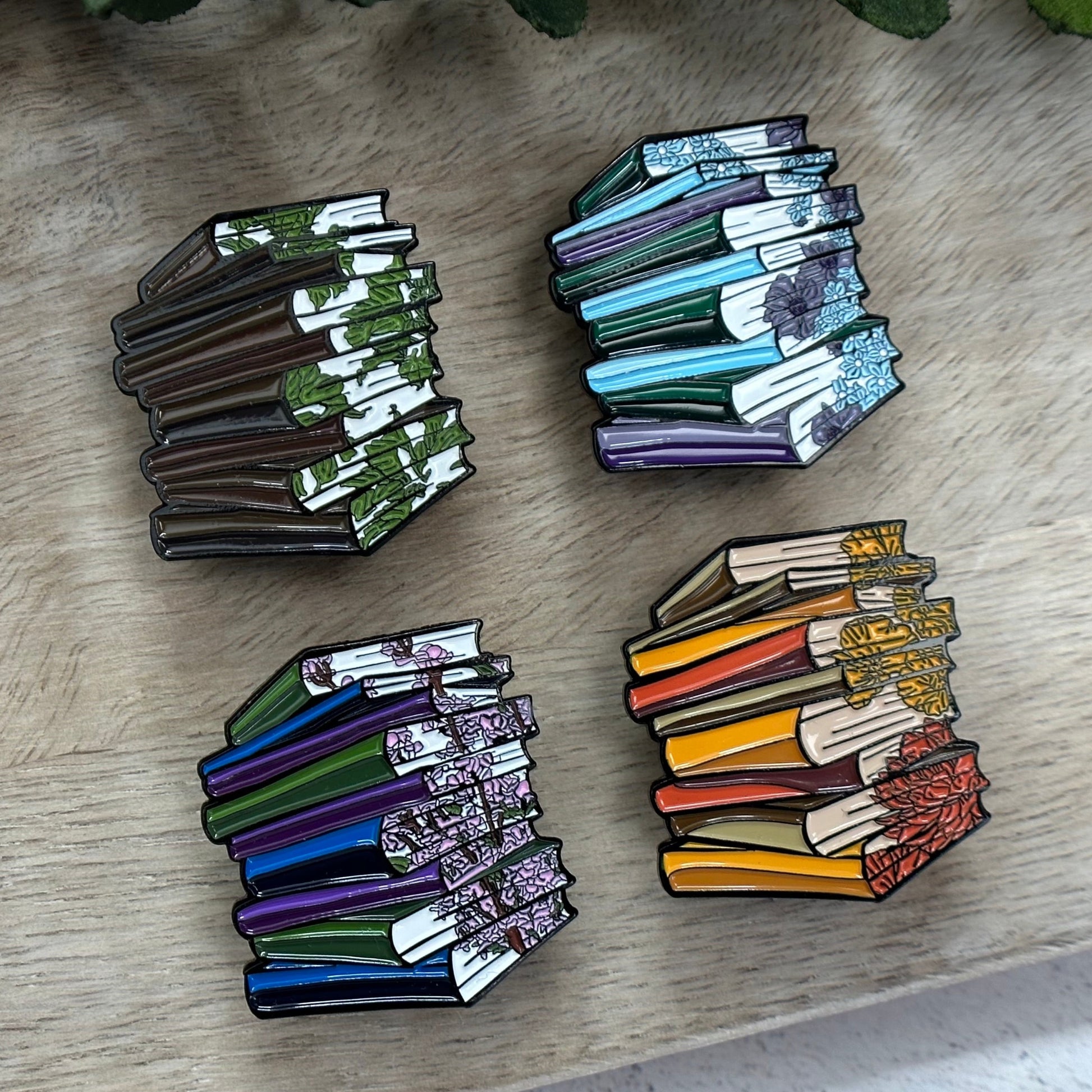 This is a set of my enamel pin of my Floral Book Enamel Pins!