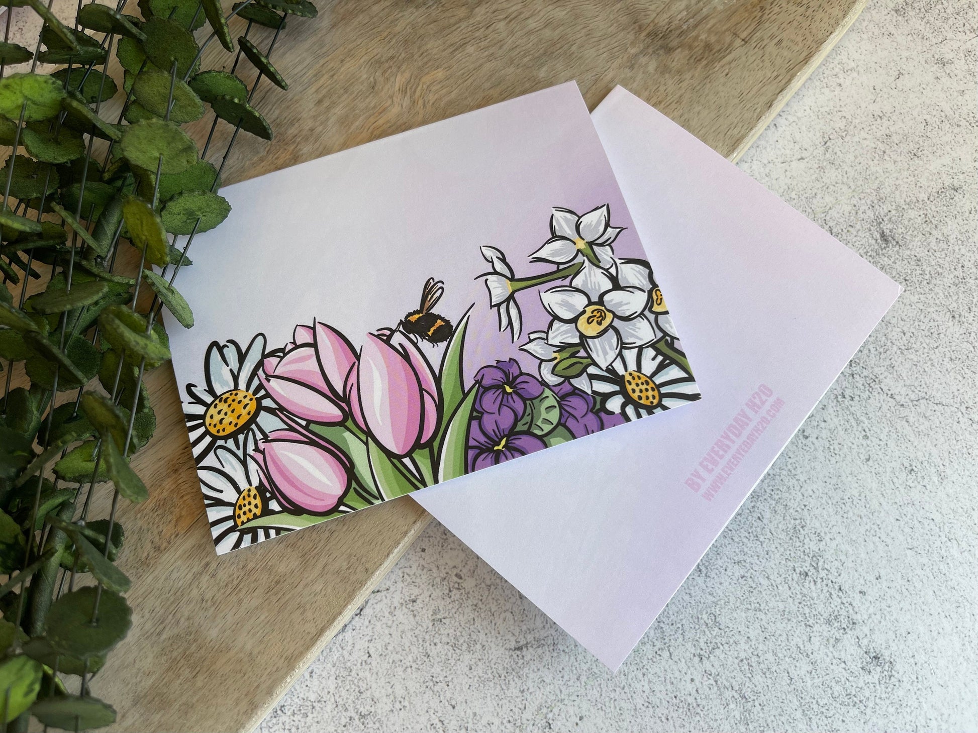 This is a set of 3 of my floral greeting cards! The Red and Orange card contains California Poppies, Pink Roses, Ferns, Eucalyptus, Red Dahlia, and a Lucky Blue Dragonfly. The Blue and Purple card contains Blue Forget Me Nots, Purple Anemones, Eucalyptus, and a big Blue Dahlia with a beautiful Blue Butterfly. The Pink and White card contains Pink Tulips, White Daisies, Paperwhites, and African Violets with a cute little Bumble Bee. They are blank inside so they can be used for any occasion.