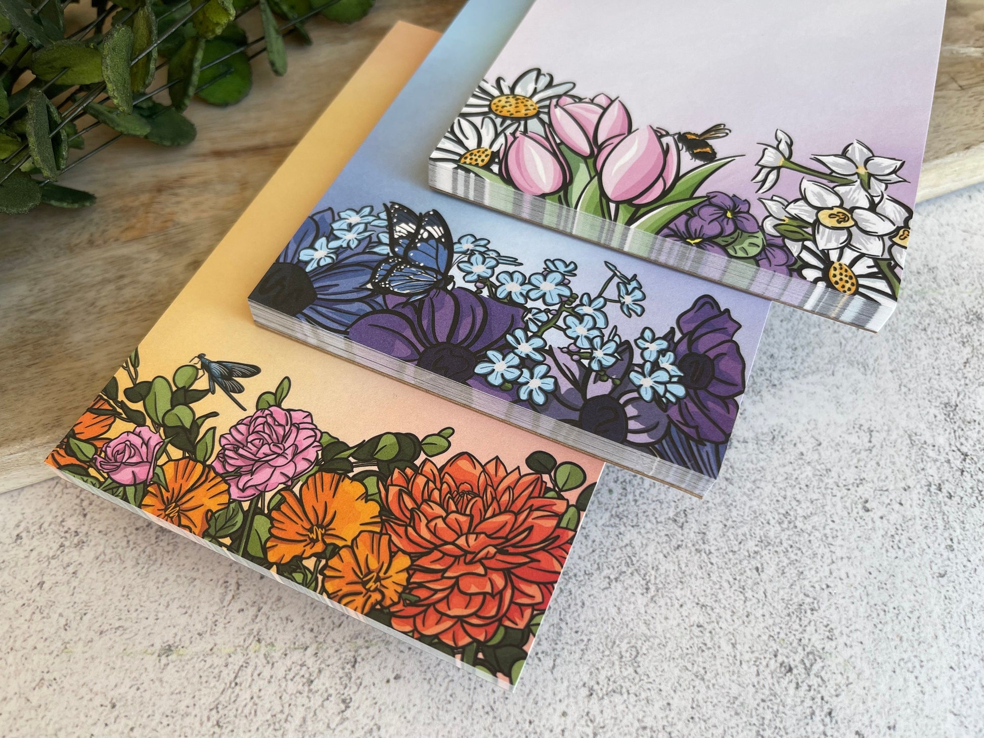 Red, Blue, and Pink Floral Notepad Set