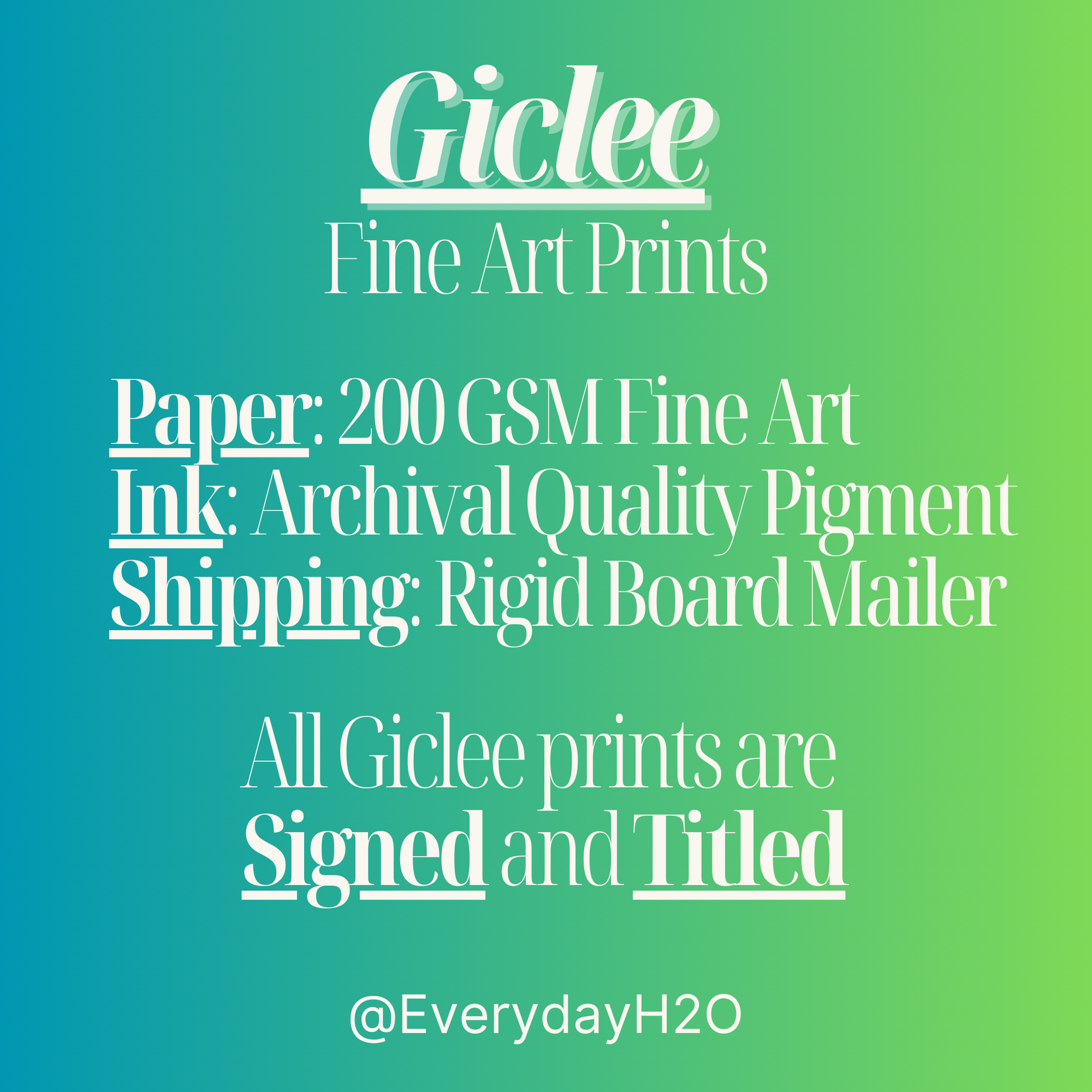 This is a Giclee Fine Art print of my hand painted gouache landscape "Forest Light." It is a fine art print using archival quality ink pigments and paper, ensuring it not to fade and achieve rich, original matching colors. All giclee prints purchased from Everyday H2O are signed and titled. Landscape sizes (10x15 and 12x18) are signed on the back, as they do not have a border.