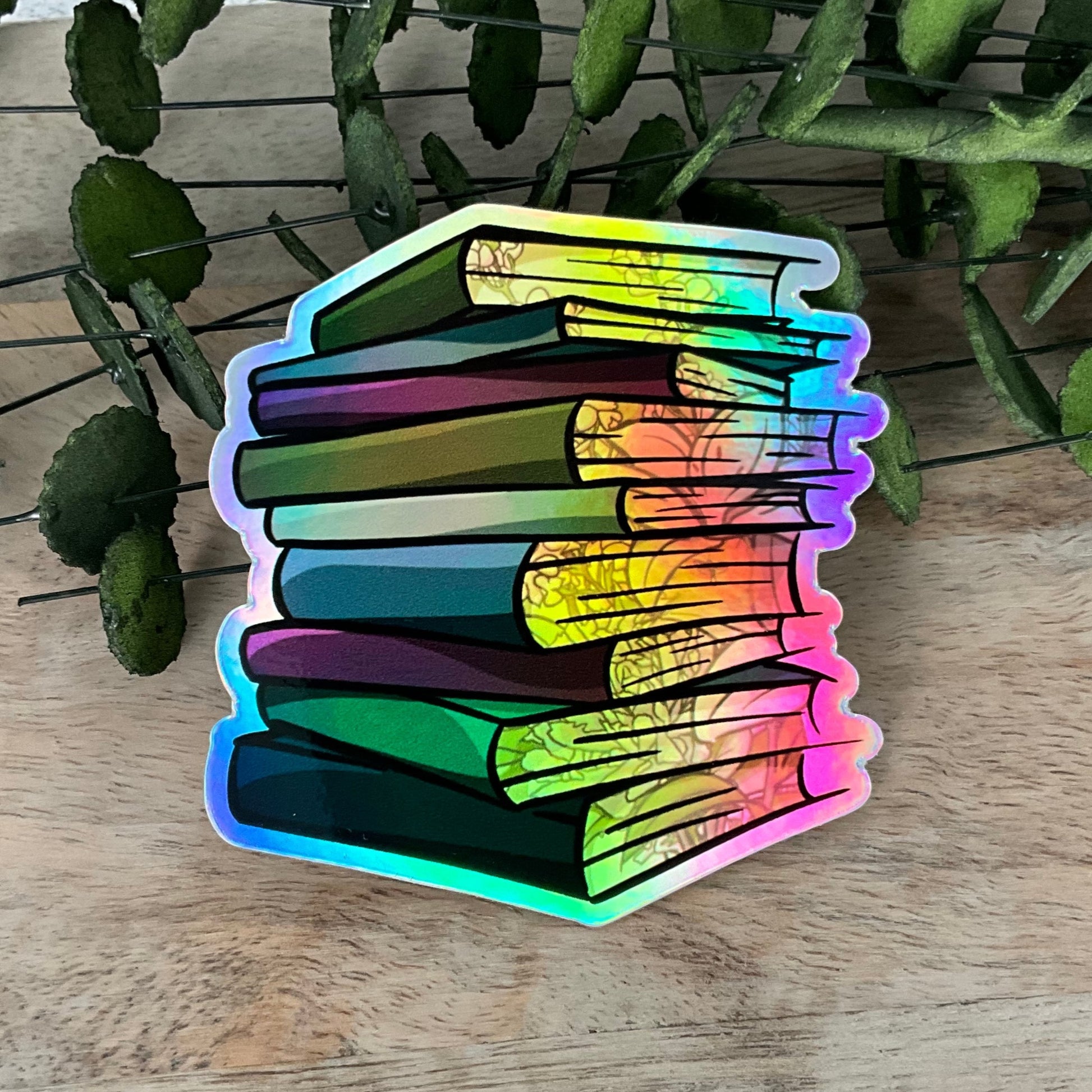 This is a sticker of my holographic stack of books with fore-edge painting digital design. Jewel toned spines with lilies, firefly, cherry blossoms, and peony. This would be a perfect gift for any book lover. Great for putting on kindles, laptops, e-readers, water bottles - anywhere your favorite reader wants.