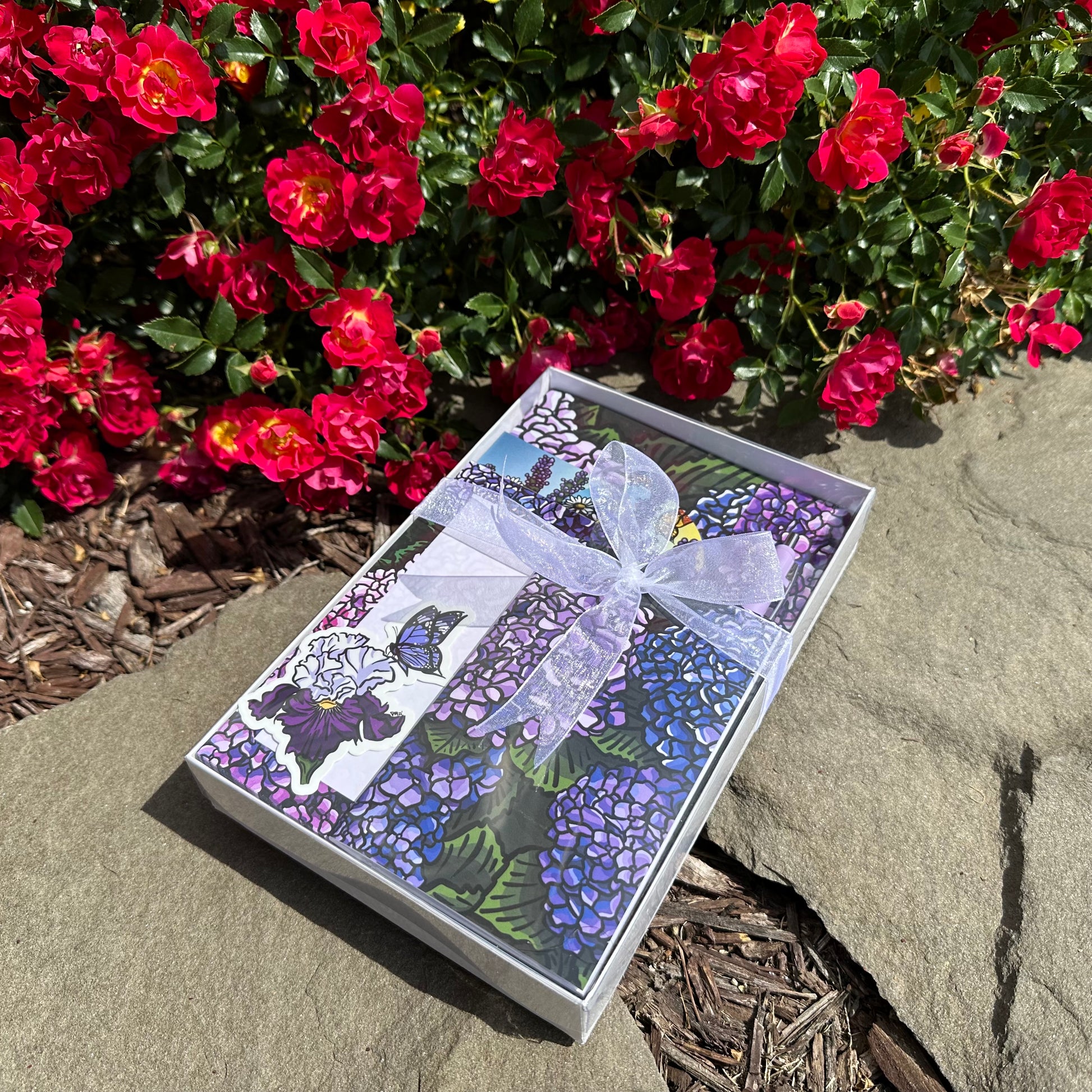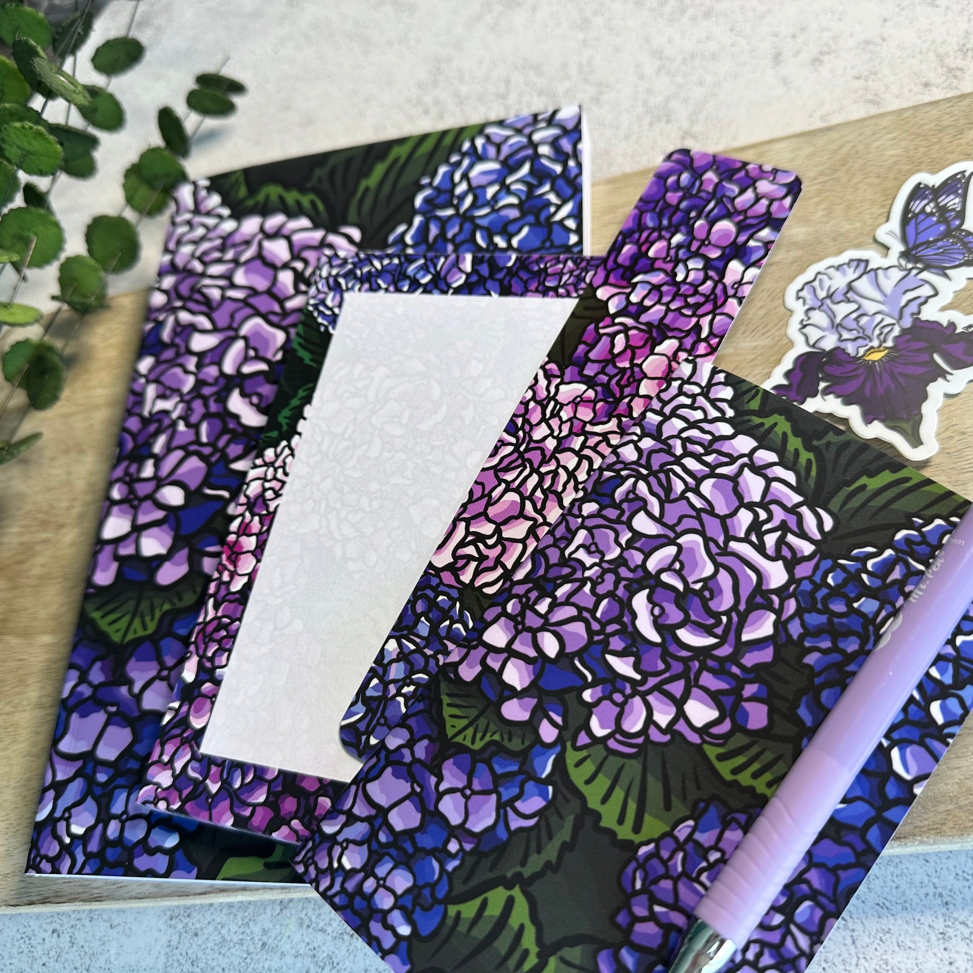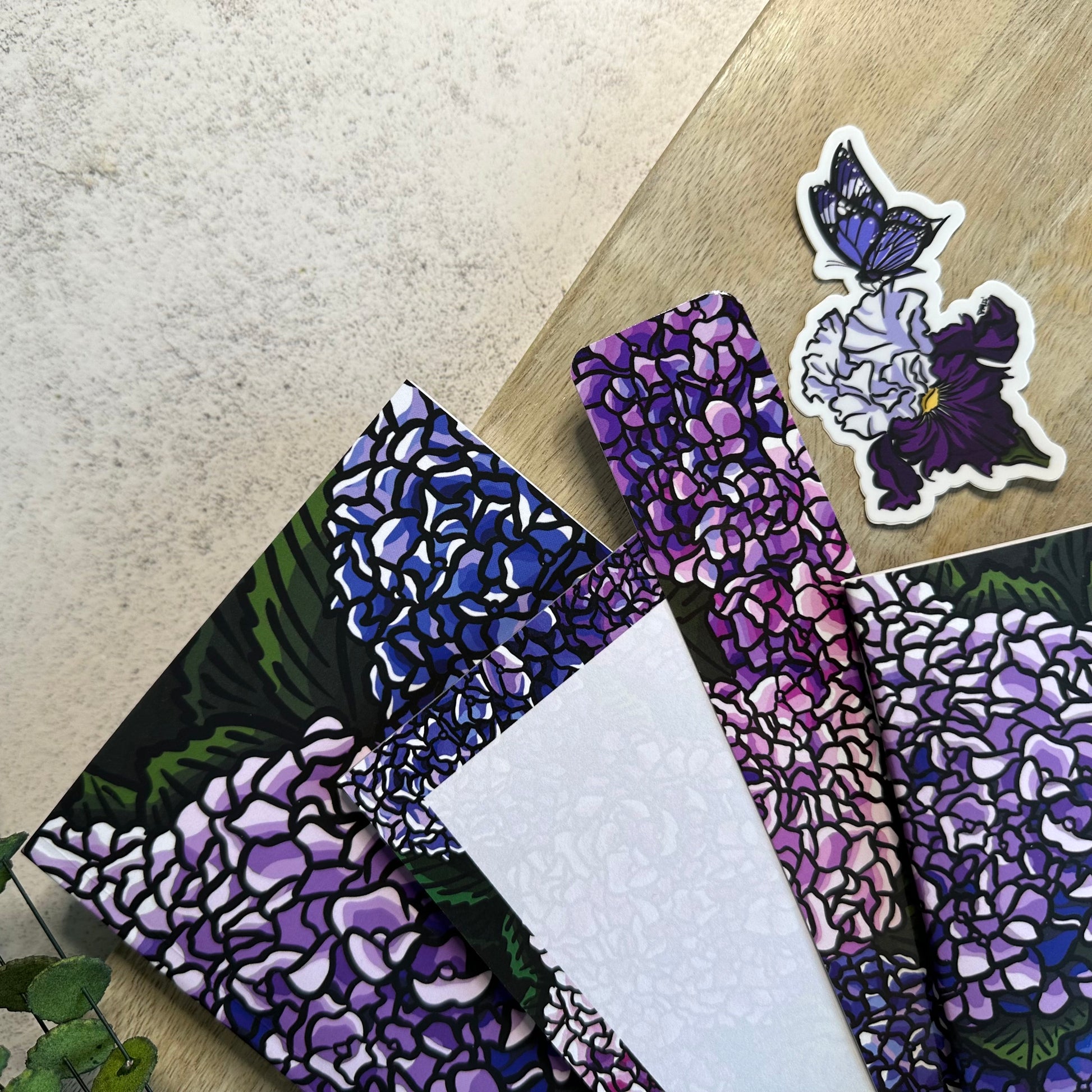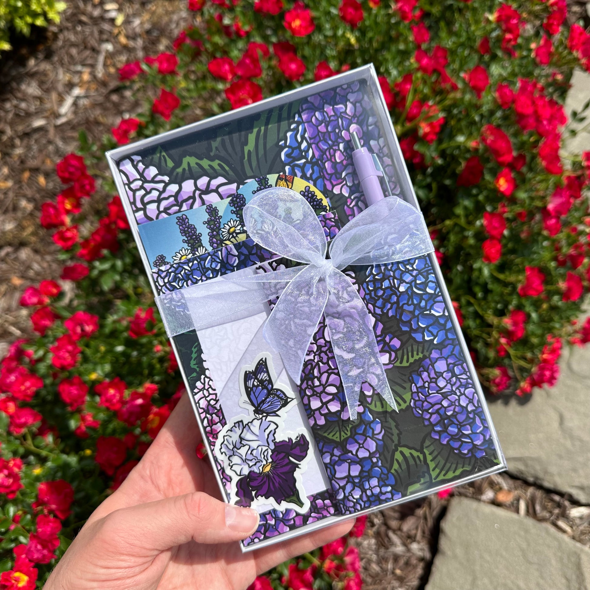 This is a Hydrangea Stationery Gift Box. You'll receive two notebooks, a notepad, a bookmark, matching pen, and a cute sticker to top it all off. These are great gifts for your mom, Please see INDIVIDUAL product listings for more information on each product.