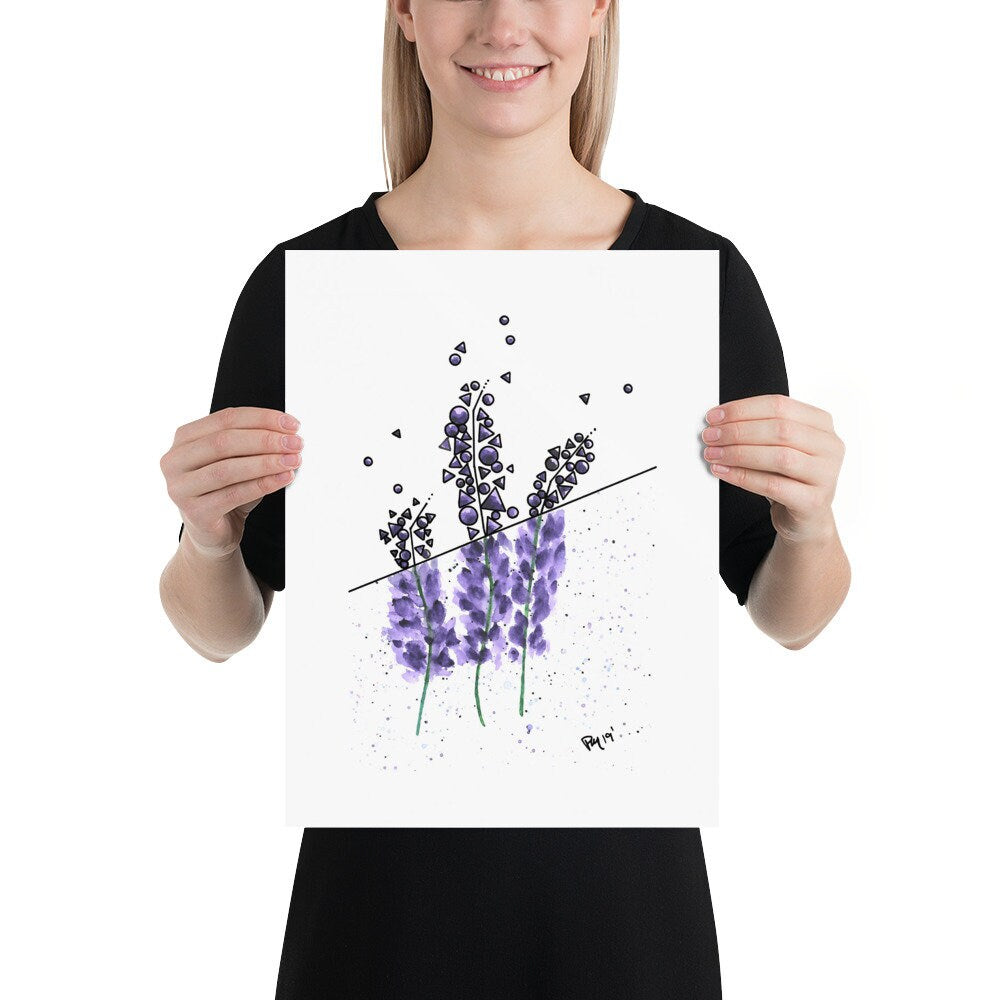 This is a physical print of a my hand painted Purple Lavender Split Geometric watercolor and ink painting!