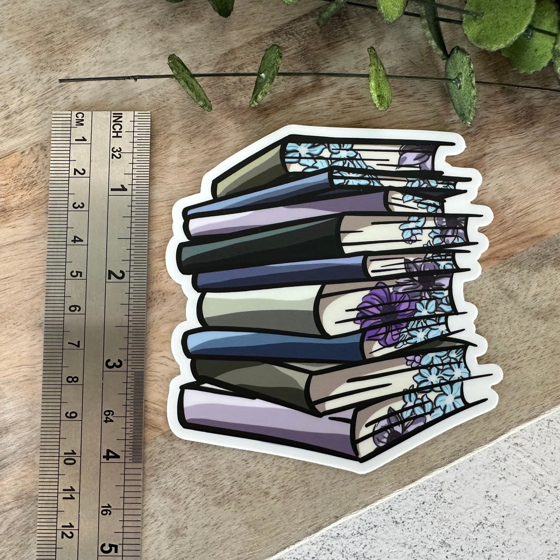 This is a sticker of my stack of books with fore-edge painting digital design. Soft purple, blue, and green book spines with purple anemones and blue forget-me-nots. This would be a perfect gift for any book lover. Great for putting on kindles, laptops, e-readers, water bottles - anywhere your favorite reader wants.