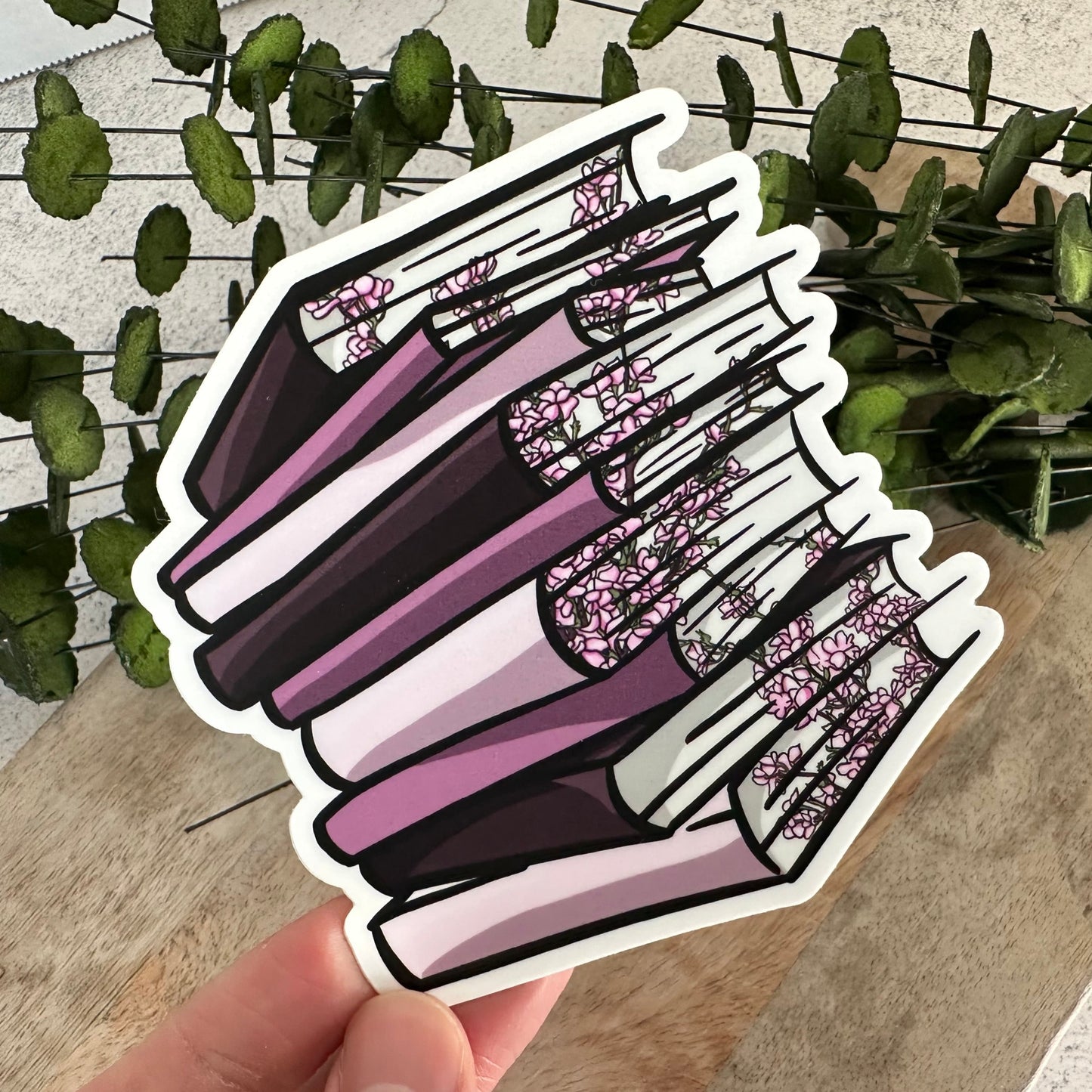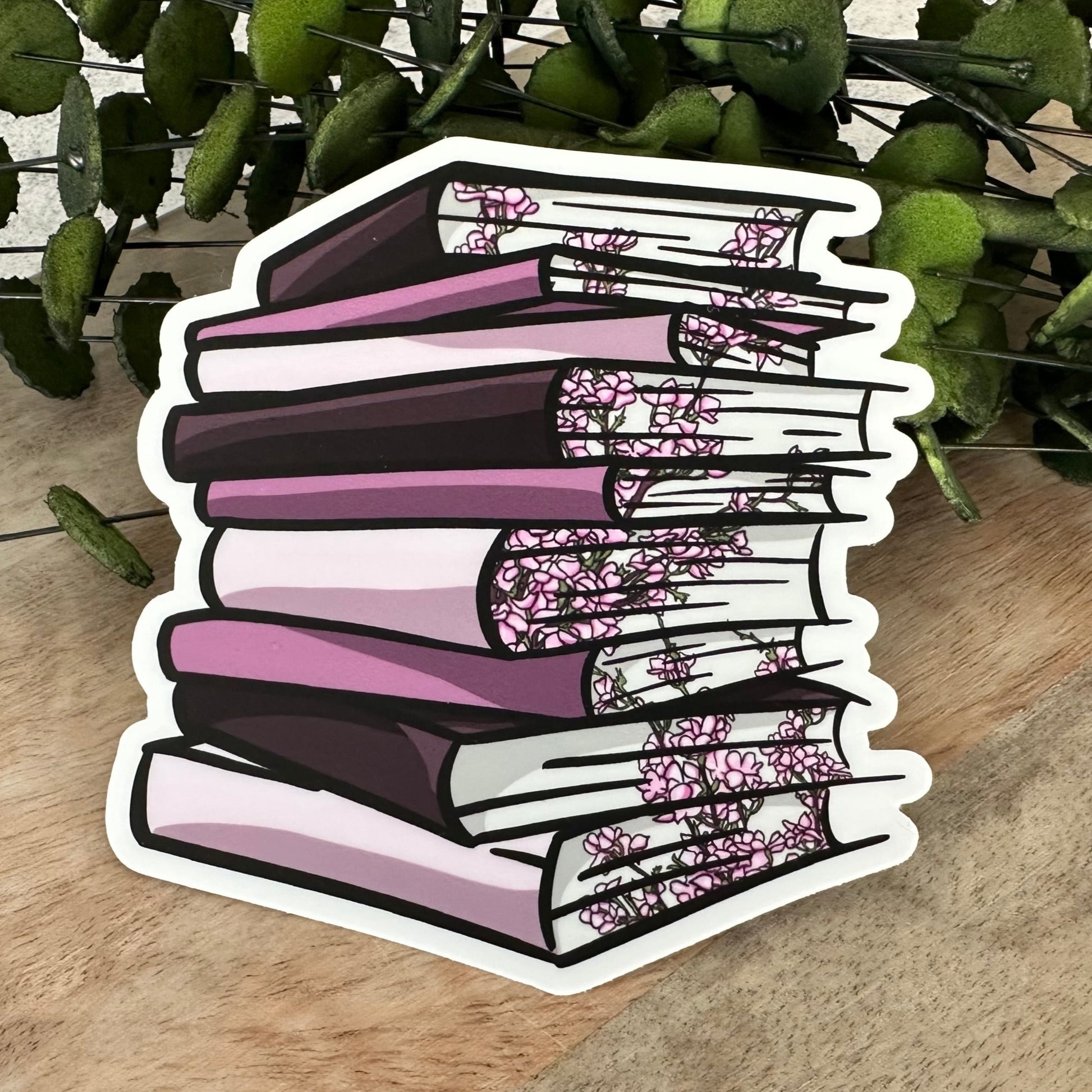 This is a sticker of my stack of books with fore-edge painting digital design. Soft pink spines and cherry blossoms are depicted. This would be a perfect gift for any book lover. Great for putting on kindles, laptops, e-readers, water bottles - anywhere your favorite reader wants.