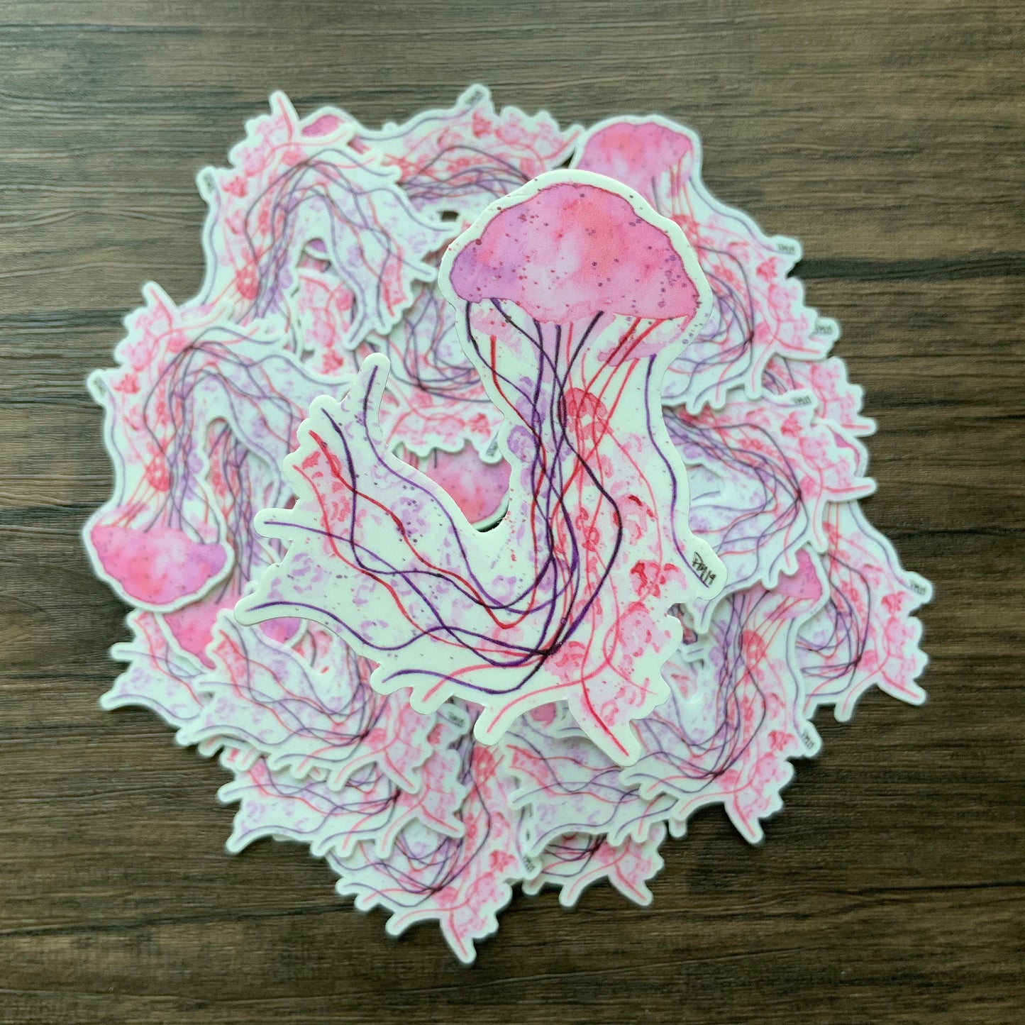 This is a sticker of my hand painted watercolor Pink Jellyfish! If you love the ocean, sea life, or anything aquatic, this one's for you!