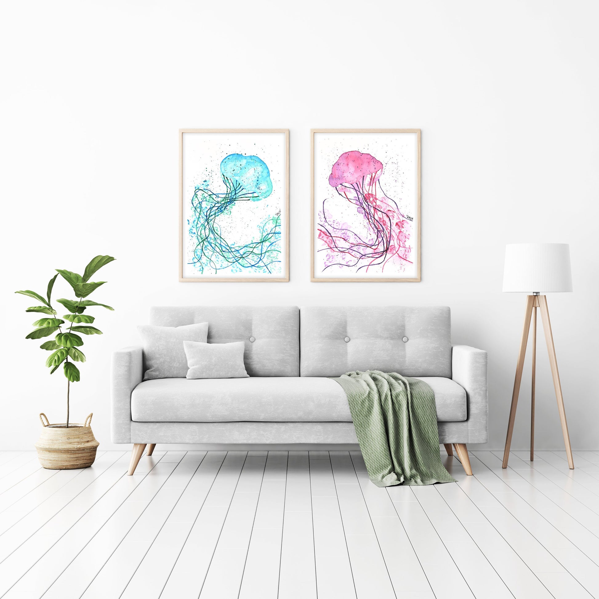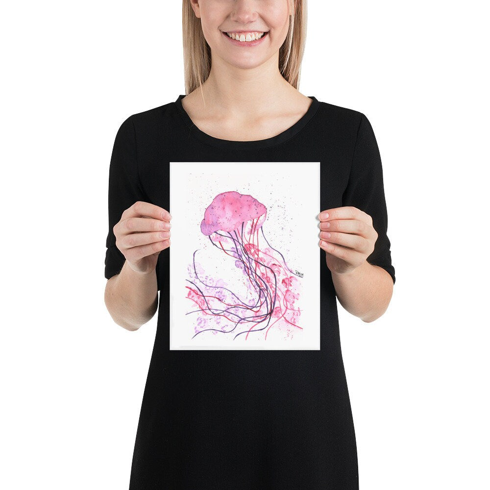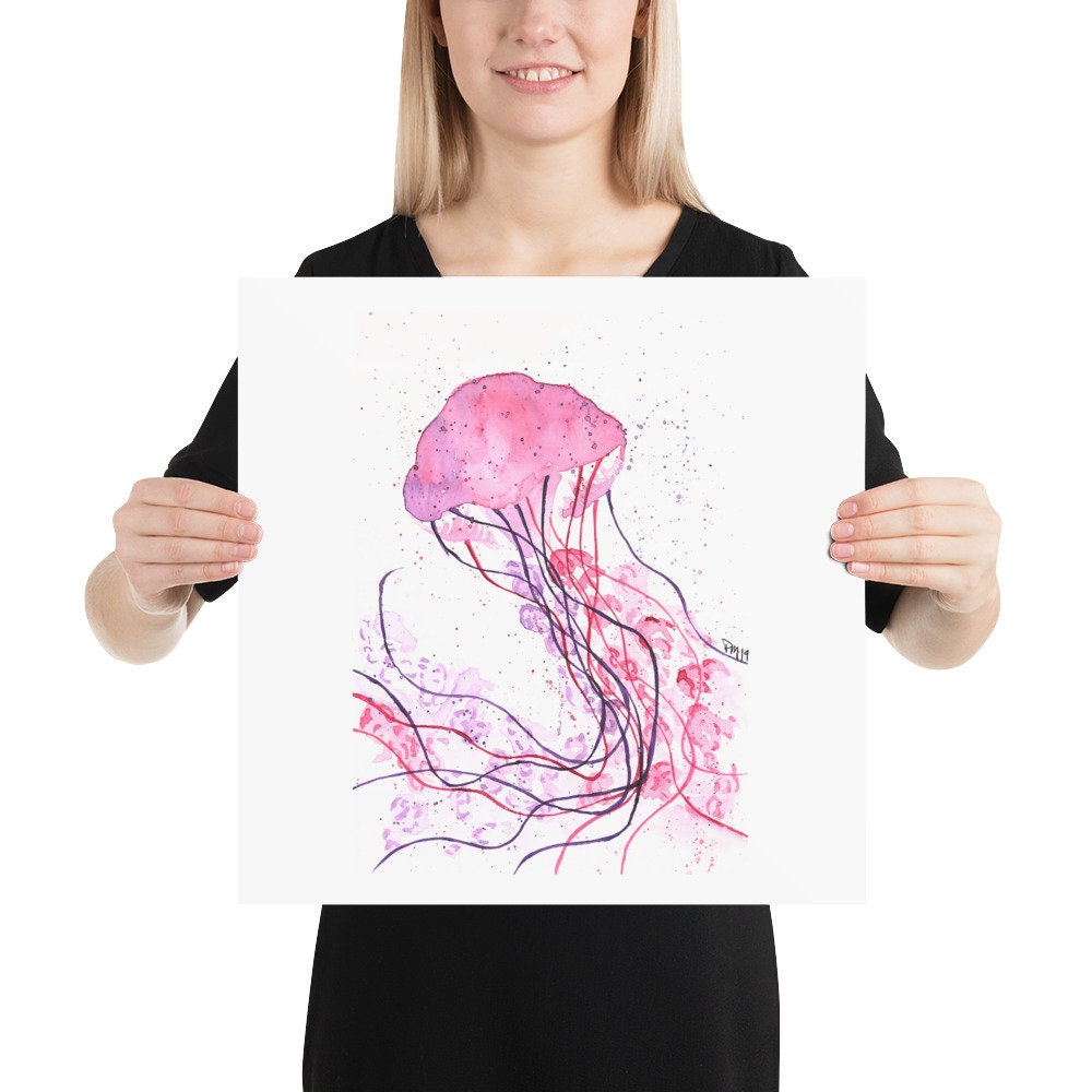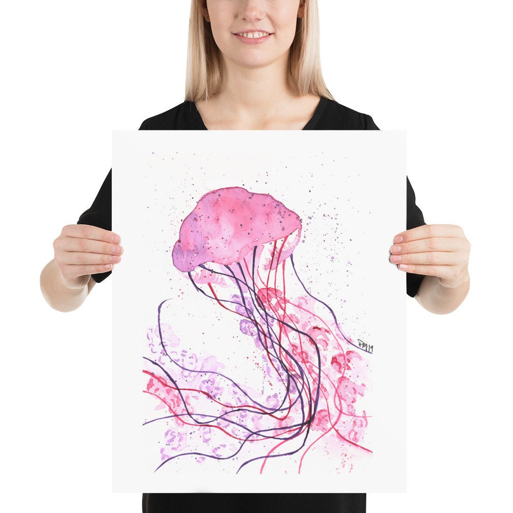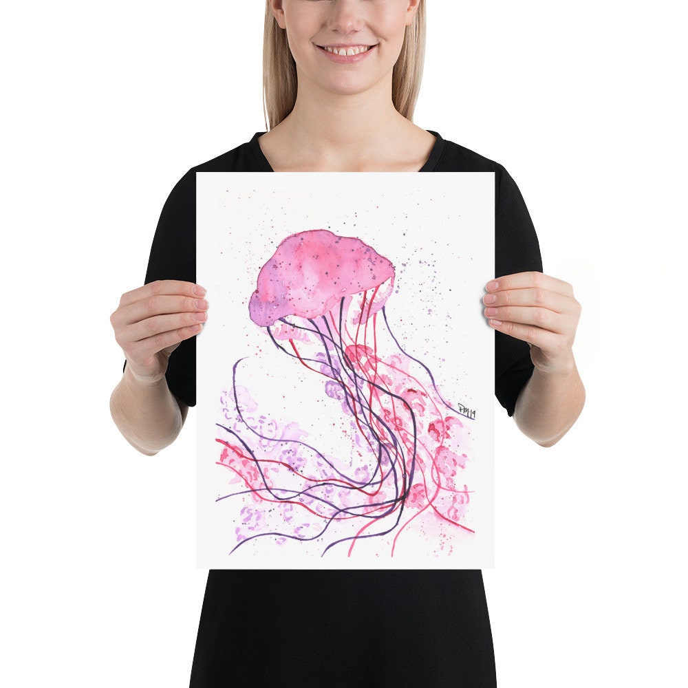 This is a physical print of a my hand painted Pink Jellyfish watercolor and ink painting!