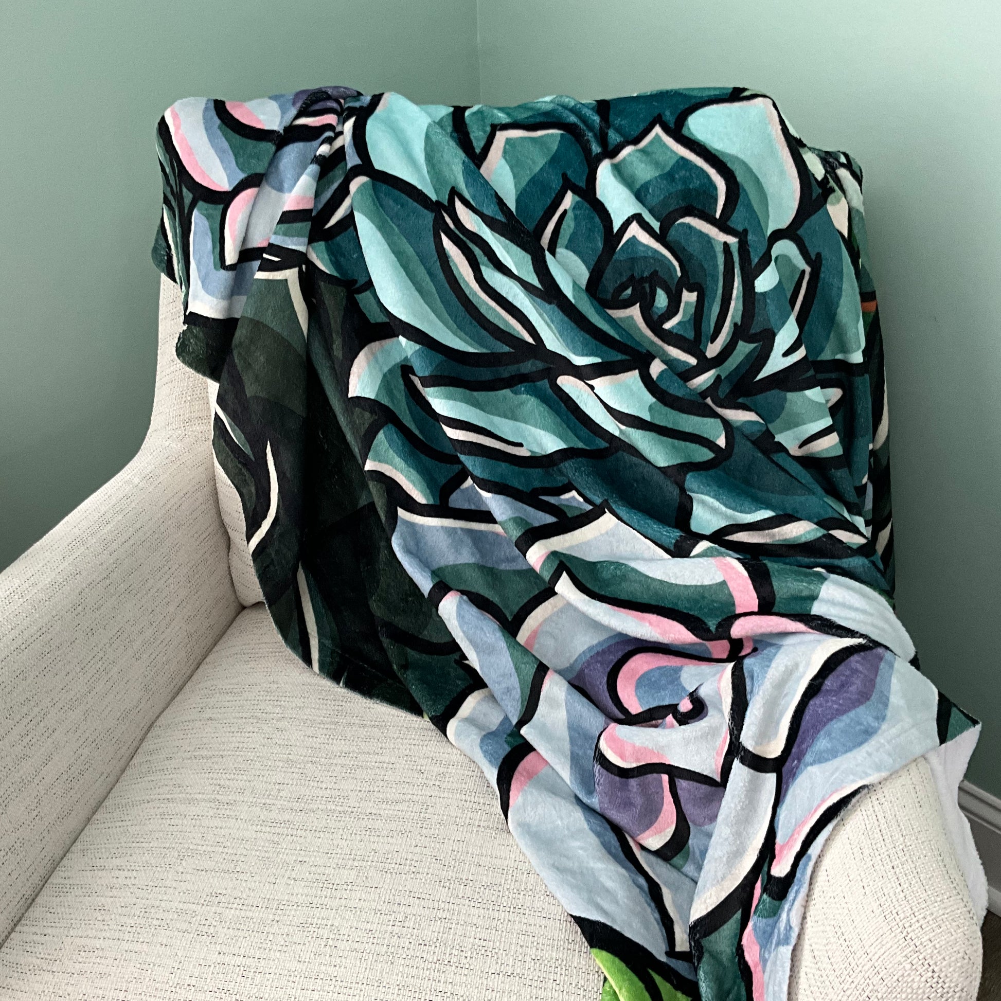 This is a silky-soft throw blanket of my vibrant multi-colored succulents! Great for a light throw blanket in your living room or favorite reading chair! Also a great gift for any gardener, succulent enthusiast, or lover of house plants!