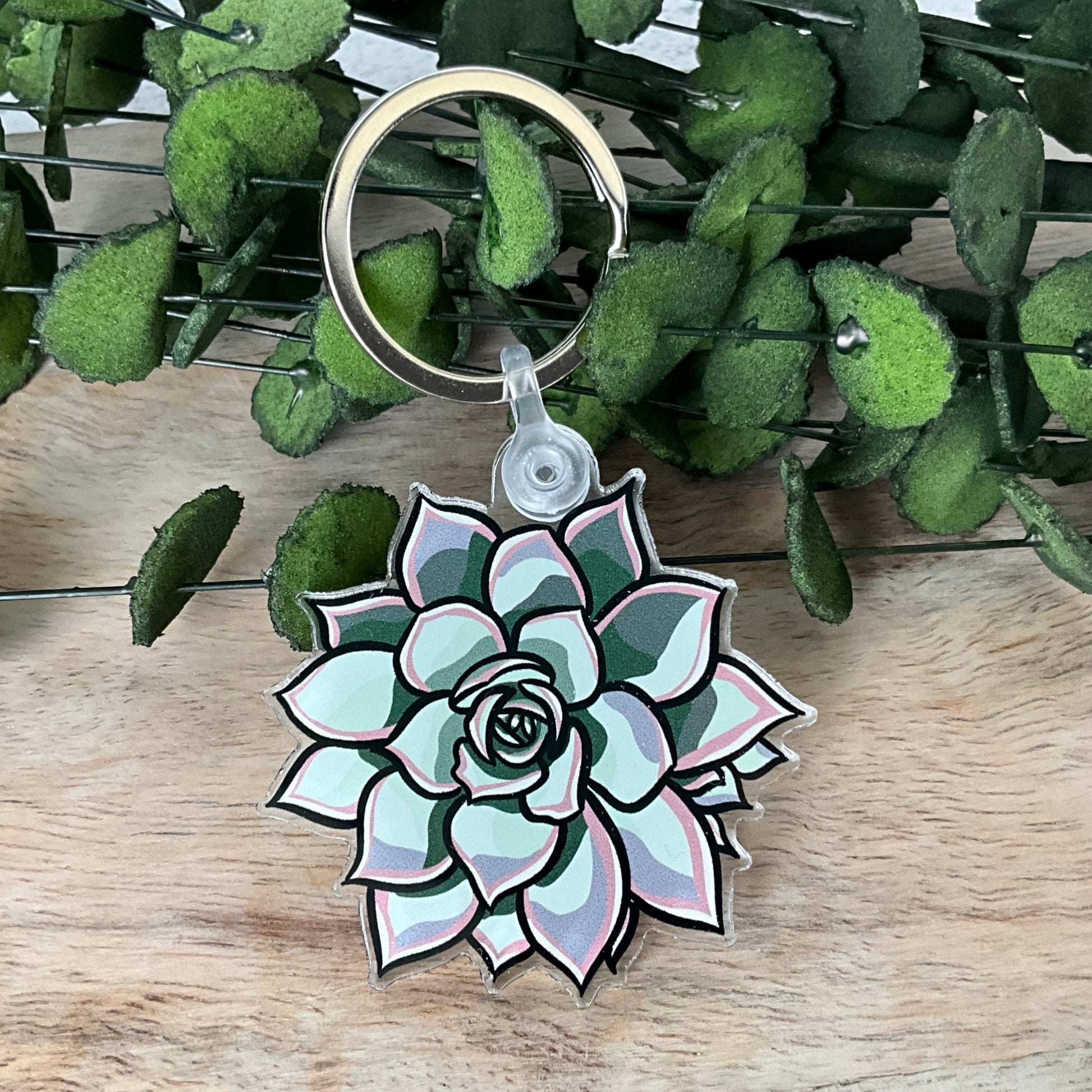 This is an Acrylic keychain of my vibrant purple and teal succulent. This is the perfect gift for any succulent lover, house plant enthusiast, or gardener.