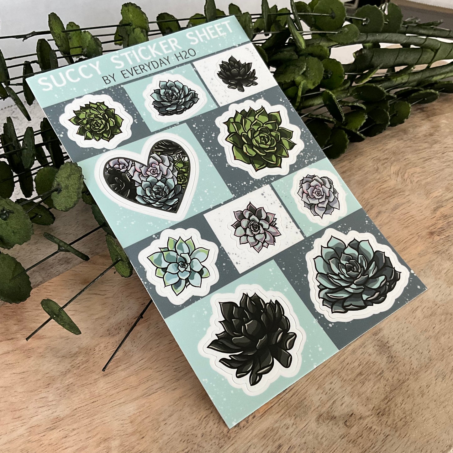 This is a sticker sheet of all my vibrant succulent designs! Perfect for journaling, scrapbooking, and putting on all of your favorite devices. This would be a great gift for any succulent lover, gardener, house plant enthusiast, or just plain nature person!