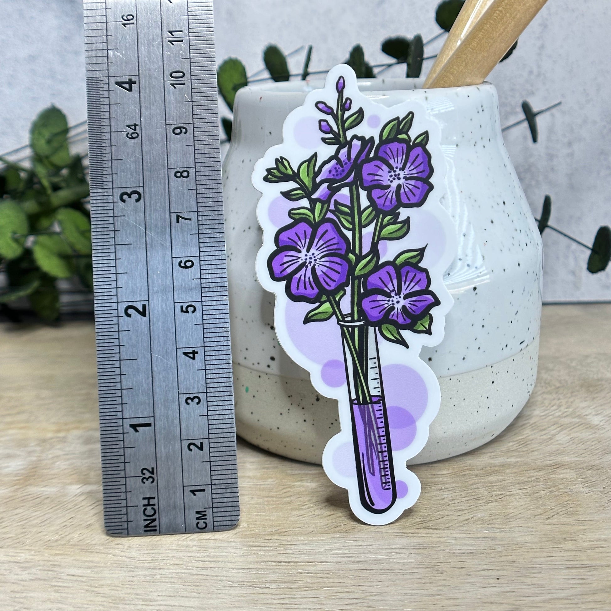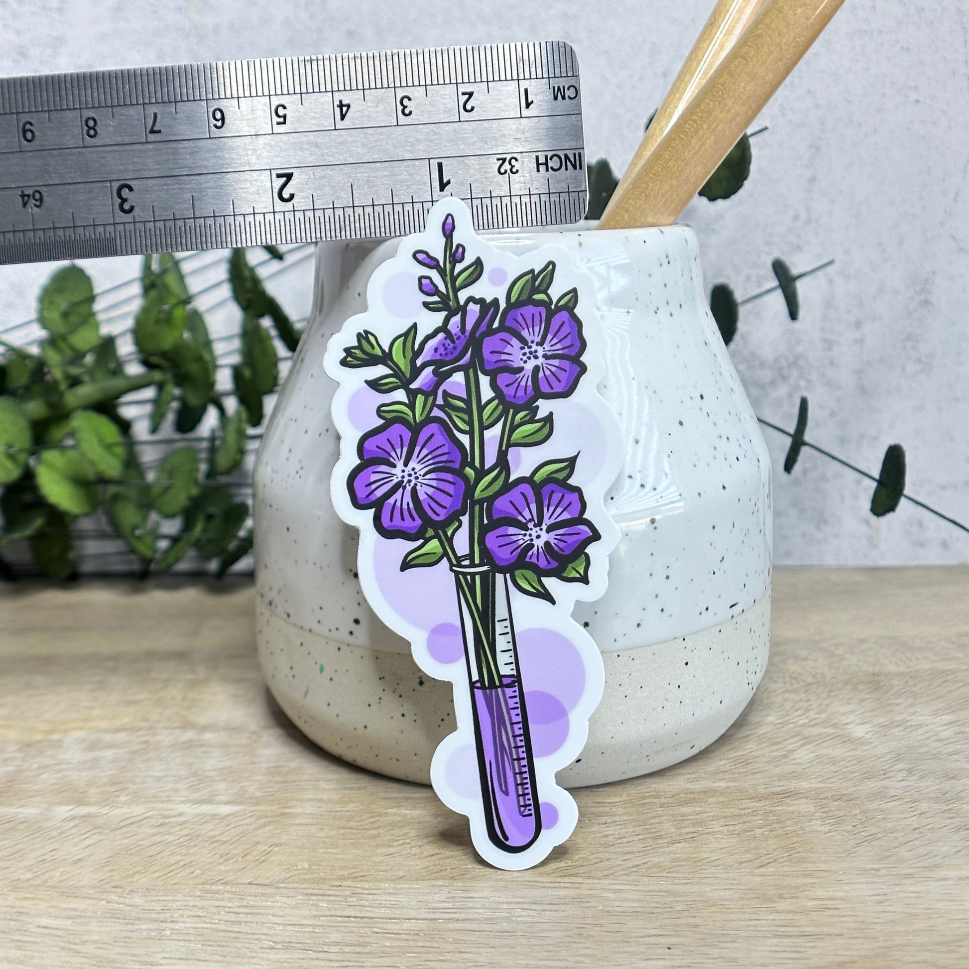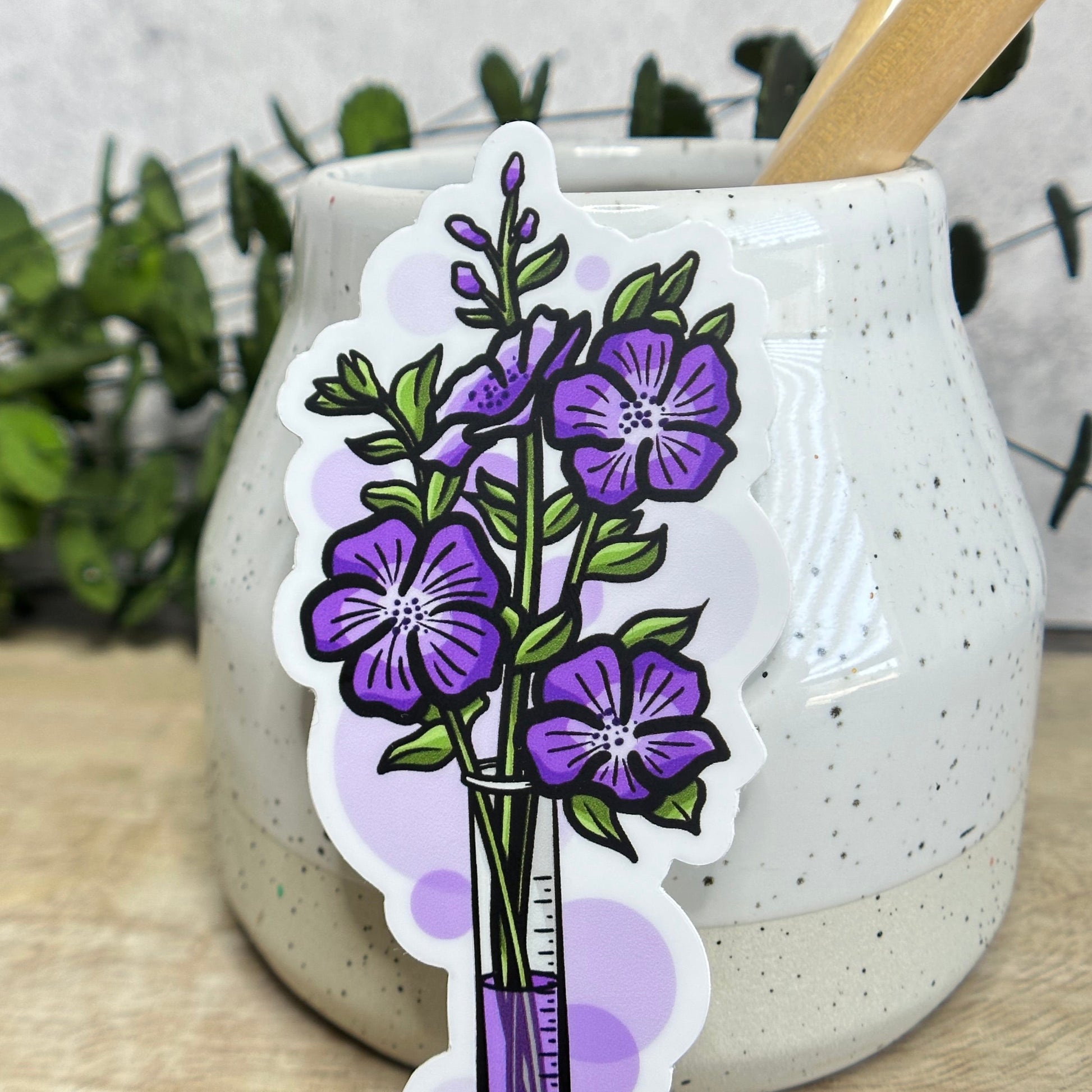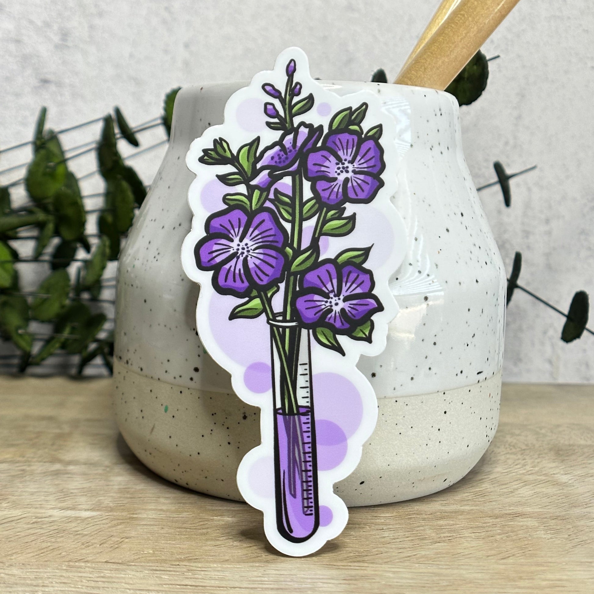 This is a sticker of my digital painting including test tube filled with violet flowers! If you`re a scientist, gardener, or just love flowers (or all of this combined!), this sticker is for you! It comes in both clear and white backings.